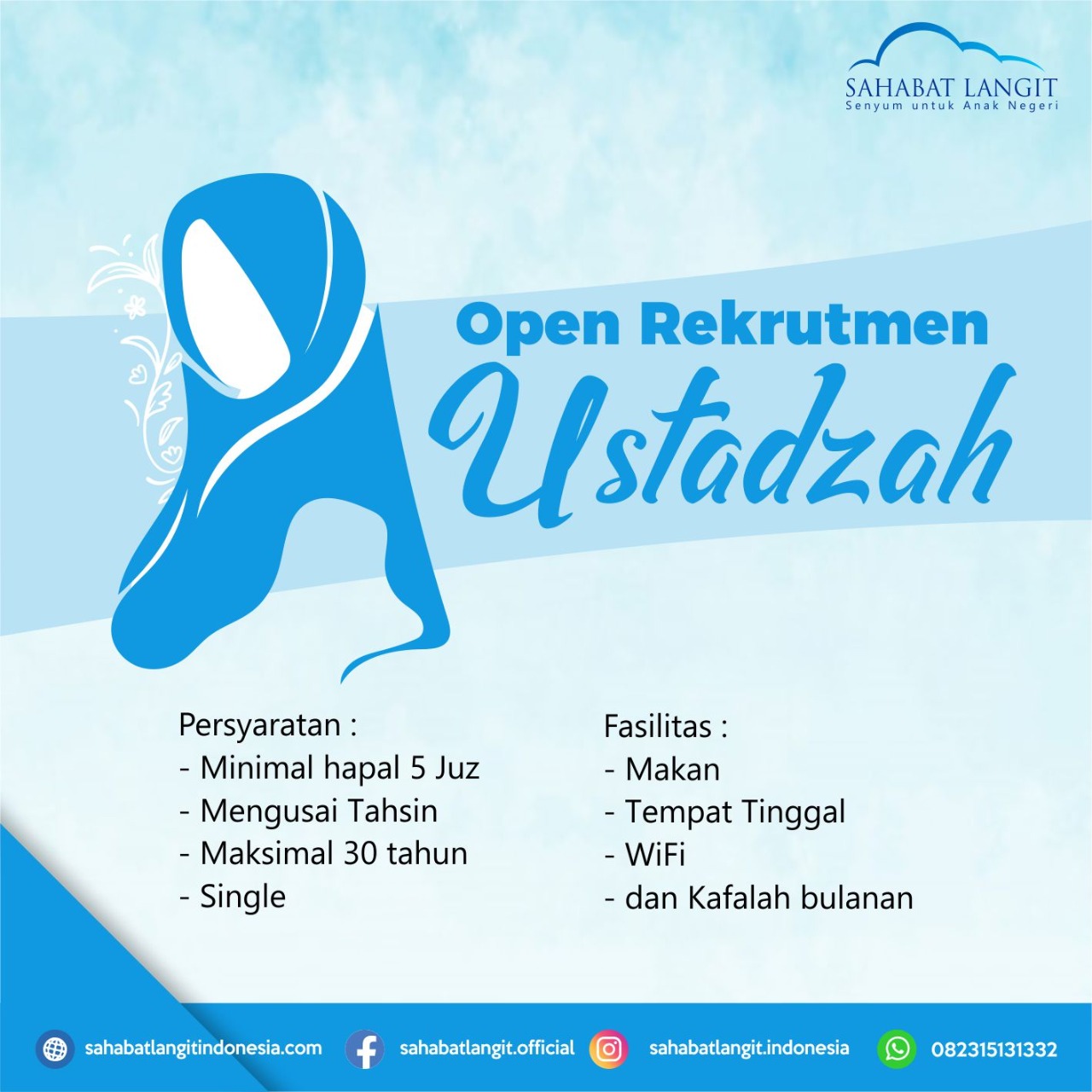 Bismillah.. Sahabat Langit sedang mencari Ustadzah untuk Adik-adik Sahabat Langit di Bandung.